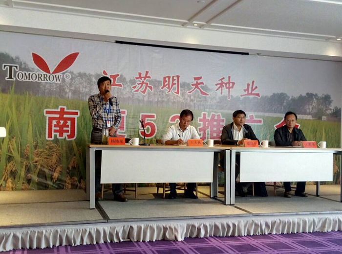 繼觀摩會后,就“南粳52”的在各地的總體表現以及推廣前景,進行了室內研討。會議由常規稻麥事業部經理周曉輝主持,公司副總經理楊地龍致歡迎辭,對各代表的出席致以熱烈的歡迎與最衷心的感謝,同時宣布會議正式開始。會上王才林所長首先向大家介紹了“南粳52”的選育過程,及該品種特征特性,讓大家對南粳52更深入的了解。參會的優秀經銷商代表南通雙豐種業黃彬經理對“南粳52”的推廣經驗做了分享,在充分肯定“南粳52”的同時,也闡述了推廣的方式方法,見解獨到,十分中肯。丹陽農技推廣站周銘成站長另辟蹊徑,就丹陽本地“南粳52”示范推廣情況作了分析,針對該品種苗期、拔節期等的特性,分享了栽培中的心得。最后省農技推廣總站鄧建平站長對本次會議作了小結,突出強調良種良法配套的推廣模式,對“南粳52”的推廣前景作了展望,信心十足,將會議推向高潮,各位代表對“南粳52”更加關注,表示會傾注更多精力推廣,努力將“南粳52”打造成區域內王牌!