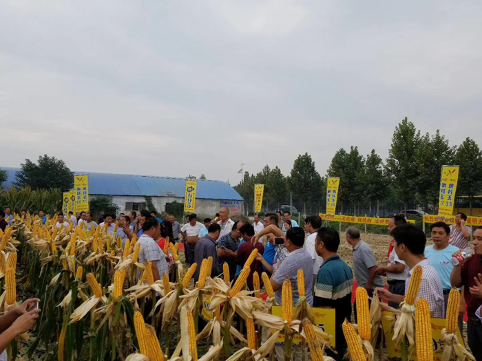 會議分為田間展示和室內會議兩部分。16日上午,與會代表首先來到位于長葛市后河鎮的”明天695”夏播展示田進行觀摩,明天695充分展示了“高抗病、強抗倒、結實好、活稈熟”的四大優點,得到了各位合作伙伴的高度評價,在示范田內大家紛紛拍照留念,并收獲滿滿,帶走了一穗又一穗樣品棒子。
