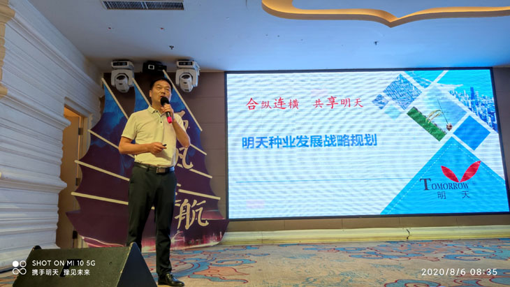 8月5-6日,2020-2021年度河南明天“情聚花都,共創(chuàng)明天”政策發(fā)布大會(huì)在花都鄢陵隆重舉行。江蘇明天種業(yè)科技股份有限公司副總經(jīng)理胡玉成、總經(jīng)理助理馬勇、市場(chǎng)運(yùn)營(yíng)中心技術(shù)部于國(guó)利、吳金鑫,河南明天總經(jīng)理劉路坡、鄢陵縣種子管理站領(lǐng)導(dǎo),以及來(lái)自全省各地的100余位銷(xiāo)售精英相聚在美麗的花都鄢陵,共商明天種業(yè)品種的推廣和發(fā)展及政策發(fā)布大會(huì)。