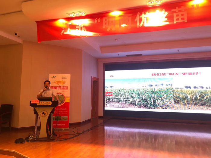金秋九月,金黃的稻谷隨著秋風(fēng)翻起金波,豐收在即。公司于9月28日-29日在江蘇省泗陽(yáng)縣新世界大酒店隆重召開 “明兩優(yōu)絲苗”輕簡(jiǎn)化栽培研討會(huì)暨田間觀摩會(huì)議。會(huì)議有幸邀請(qǐng)到泗陽(yáng)縣農(nóng)業(yè)農(nóng)村局陳春化局長(zhǎng)致辭,泗陽(yáng)縣作栽站范輝站長(zhǎng)參加;參加會(huì)議的還有江蘇明天種業(yè)科技股份有限公司副總經(jīng)理胡玉成、總經(jīng)理助理?xiàng)詈2肮敬恚骺h市經(jīng)銷商、種植大戶、育秧合作社代表共計(jì)200余人參加會(huì)議。